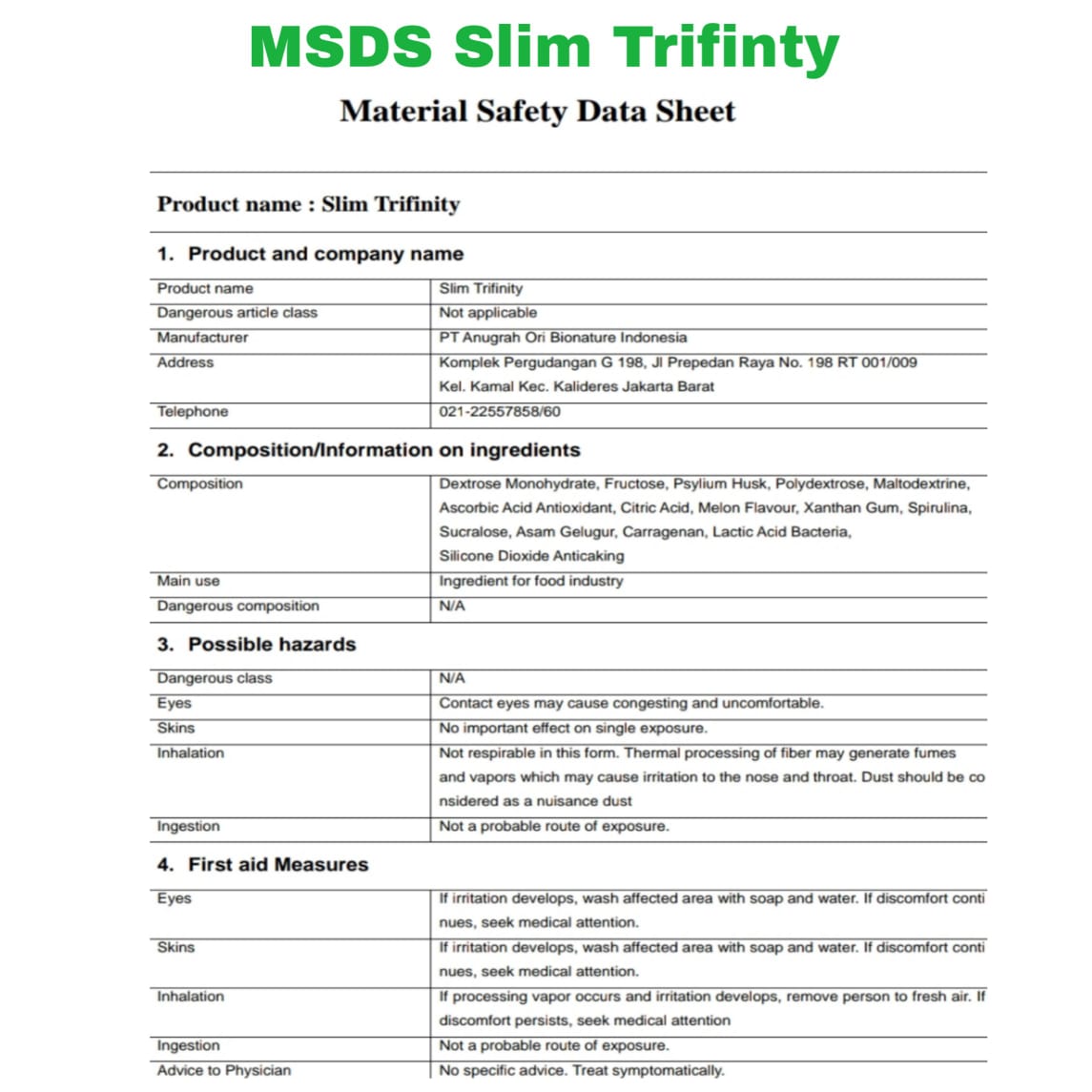 Sertifikat Certificate COA MSDS BPOM Slimtrifinity